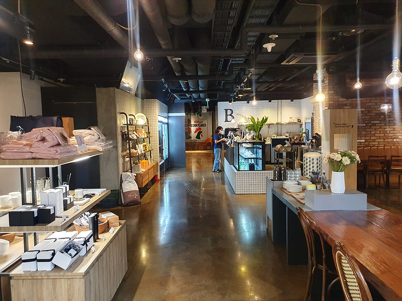 체크인할 때 받았던 바우처로 커피를 마시려 지하 1층 카페 볼륨으로 내려갔습니다.