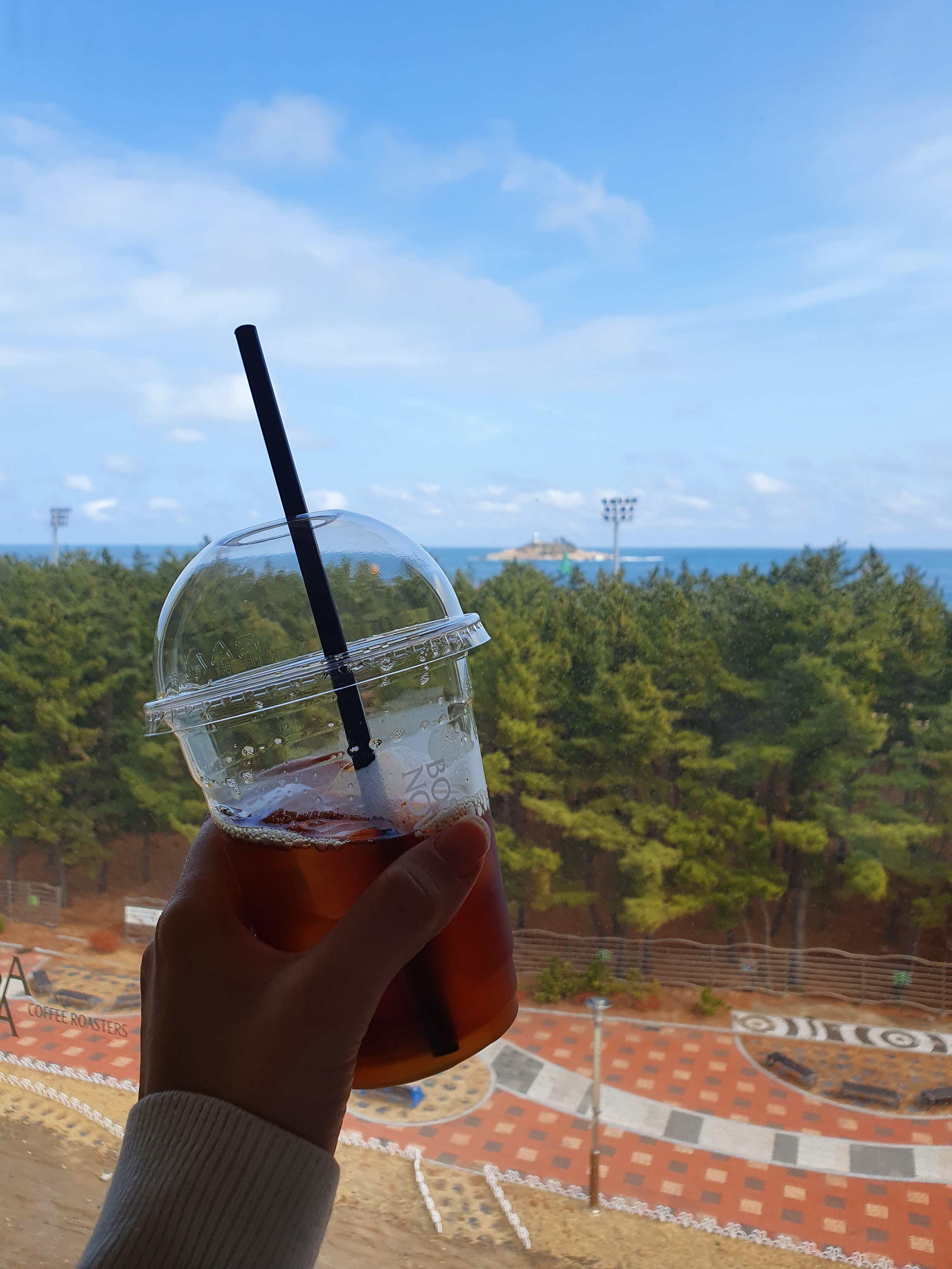 바다 보며 여유롭게 커피 한잔을 하고