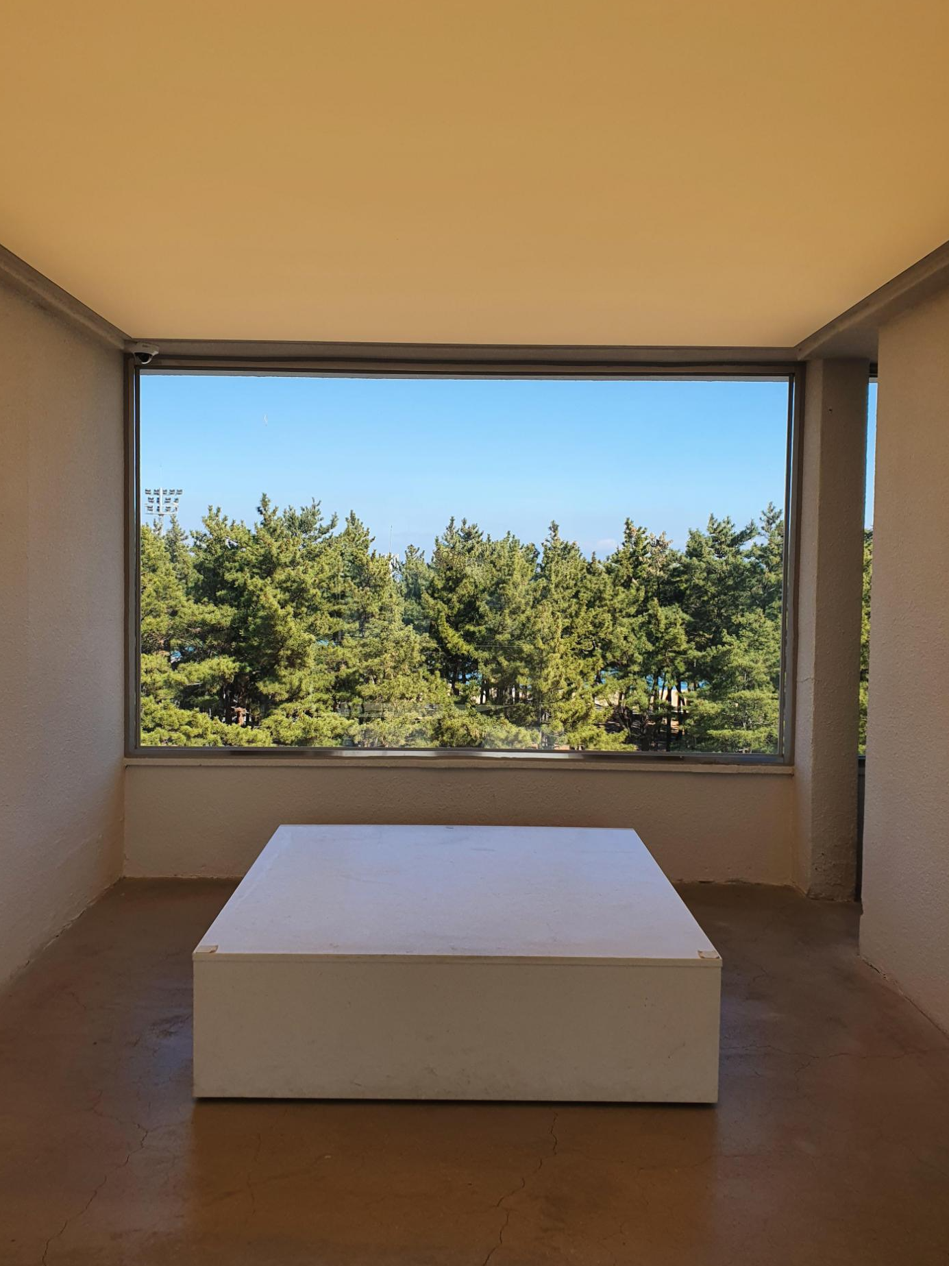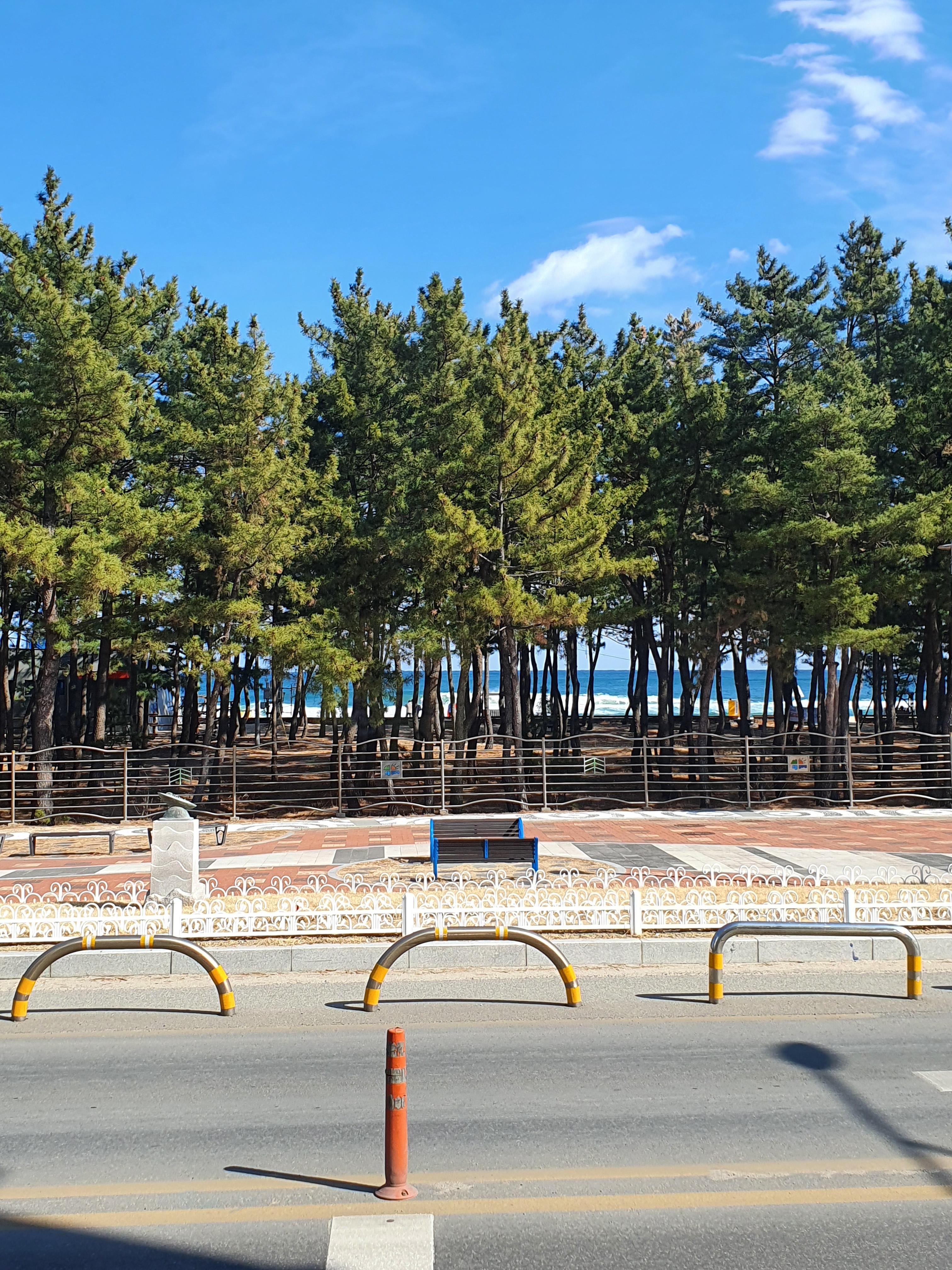 들어서면 소나무 사이로 파도치는 바다가 보인다.