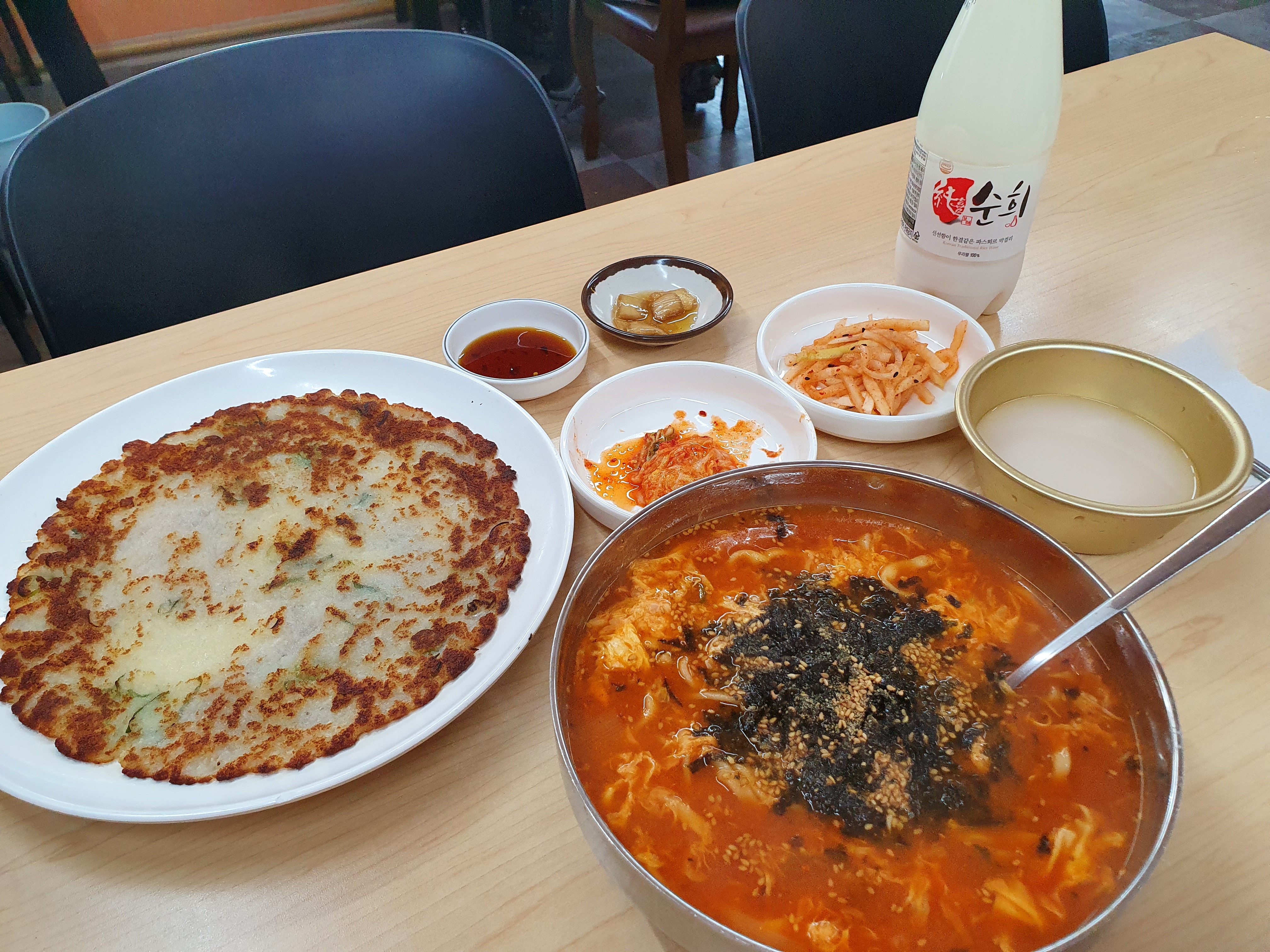 우리는 장칼국수와 감자전을 시켰다.