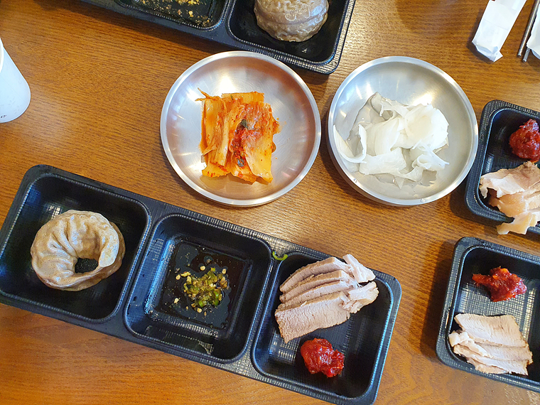 육식 파인 저는 제일 먼저 수육으로 손이 갔는데, 음.. 맛이 없지는 않지만 고기가 좀 뻑뻑한 편이었어요.