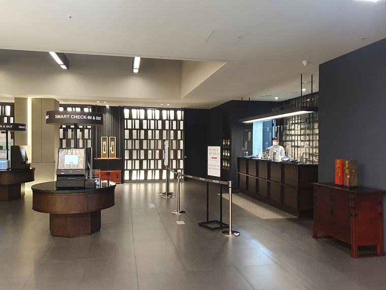 호텔 입구부터 한국적인 요소가 많이 보이기 시작합니다.