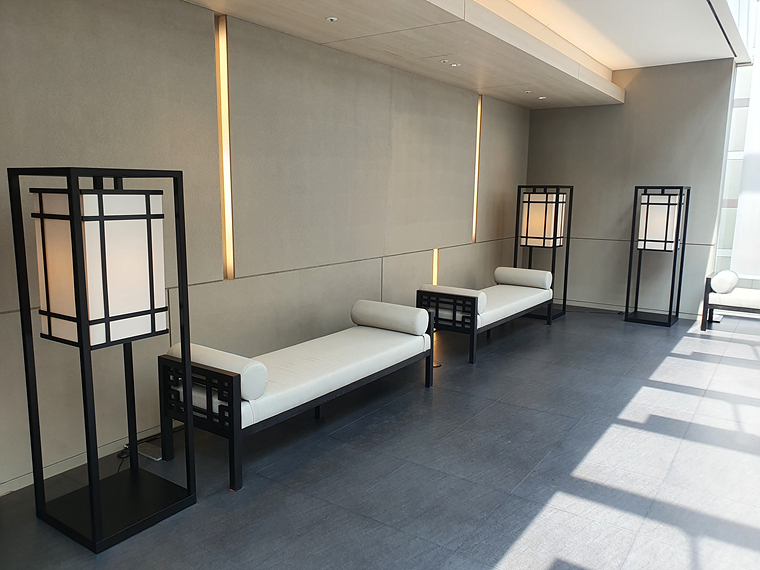 체크인 데스크 또한 한국적인 느낌을 모던하게 풀어낸 공간이었어요.